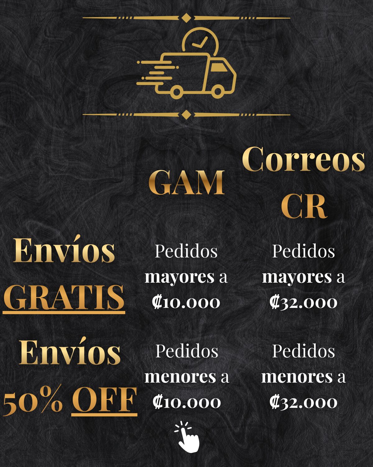 Entregar rápidas en el GAM con mensajería propia, y en zonas rurales por medio de Correos de Costa Rica